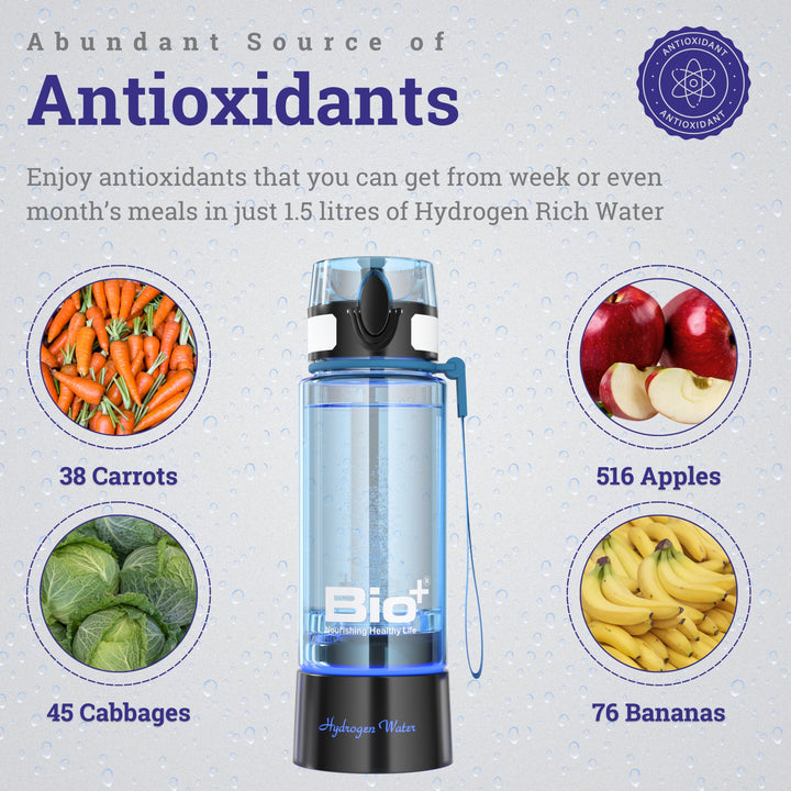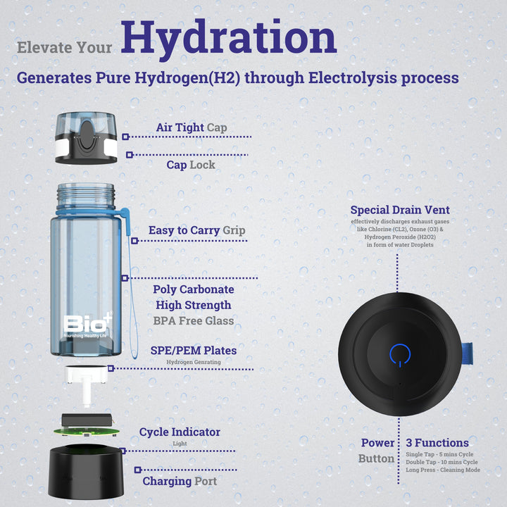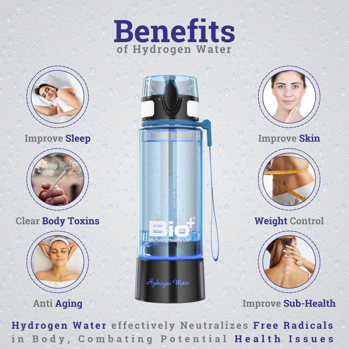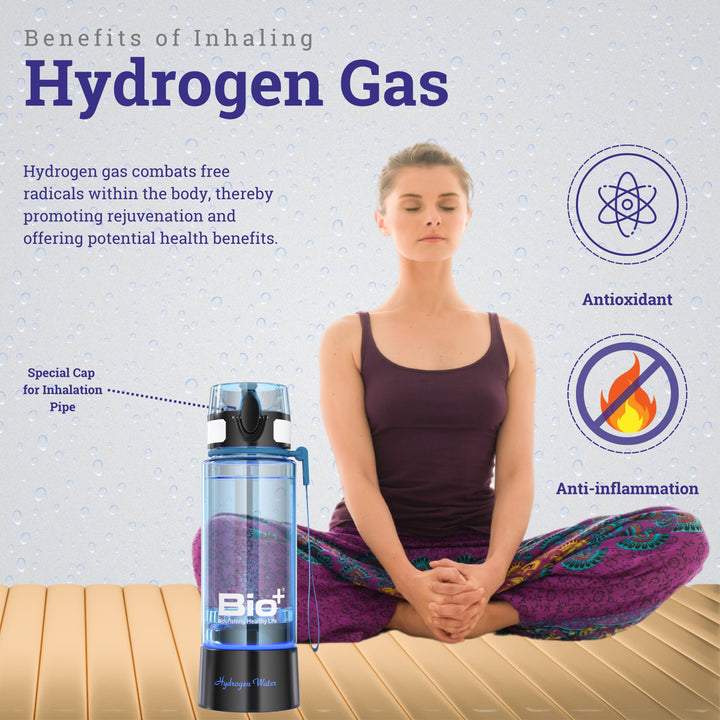 The Bottle infuses dissolved free molecules of Hydrogen. Dissolved Hydrogen has benefits like being absorbed by the body quickly, making water antioxidant, reducing inflammation, reducing the risk of metabolic syndrome, providing neuroprotection for various diseases, reducing side effects associated with cancer radiation treatment, and more than 150 more benefits.